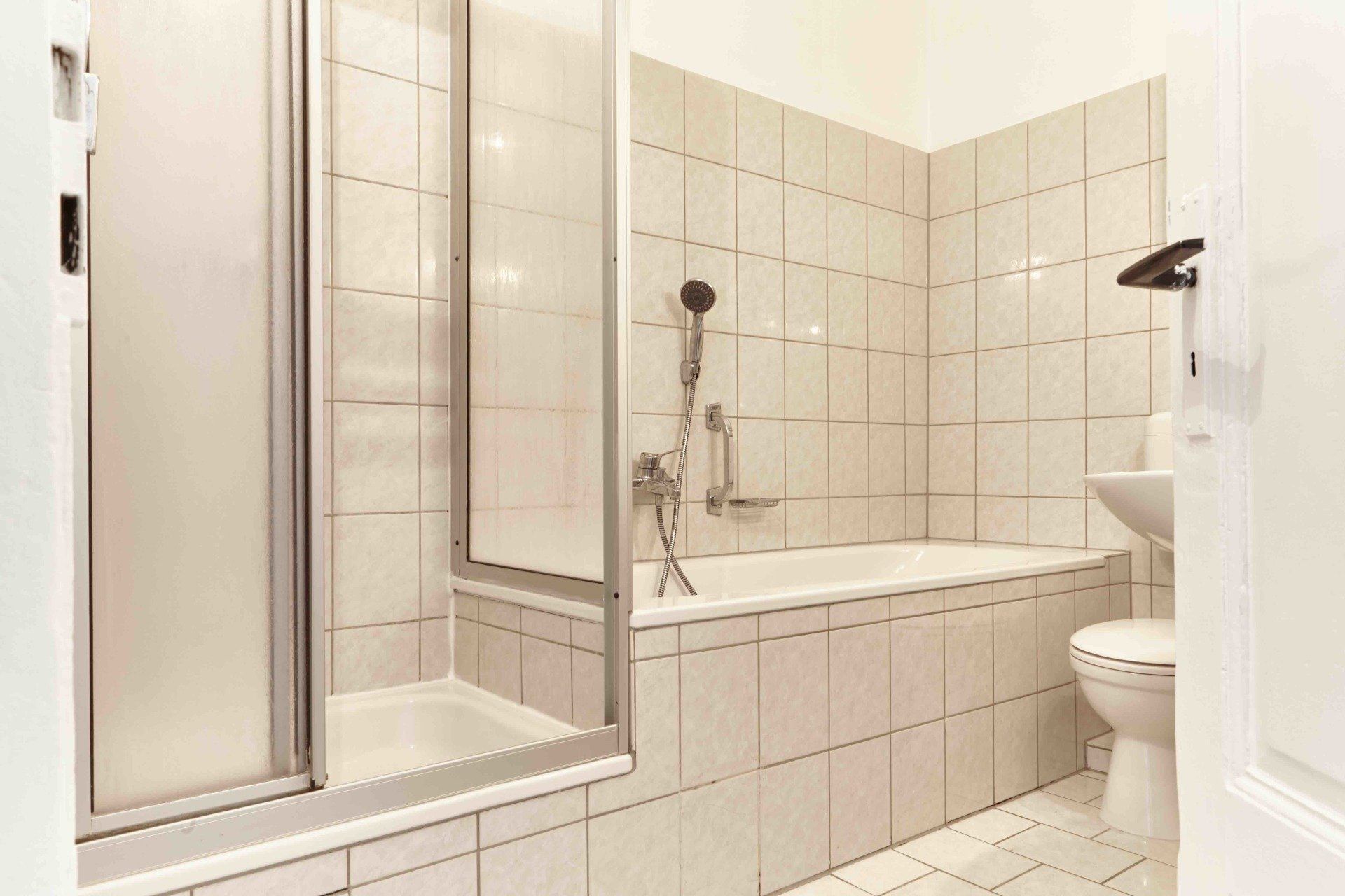 unten: Badewanne, Dusche, WC